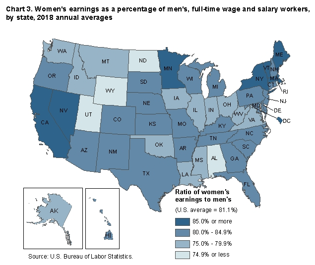 Midwest Compared to all United States, Women’s Earnings as a Percentage of Men’s