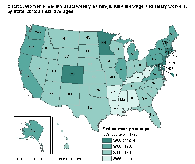 Midwest Compared to all United States, Women’s Median Weekly Earnings
