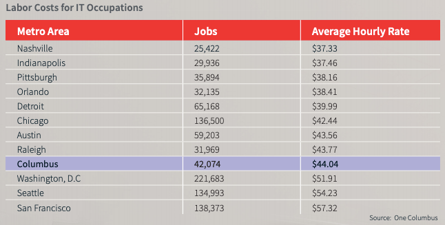 Columbus, Ohio Technology Talent and Labor Cost Review including Comparison to Major US Markets