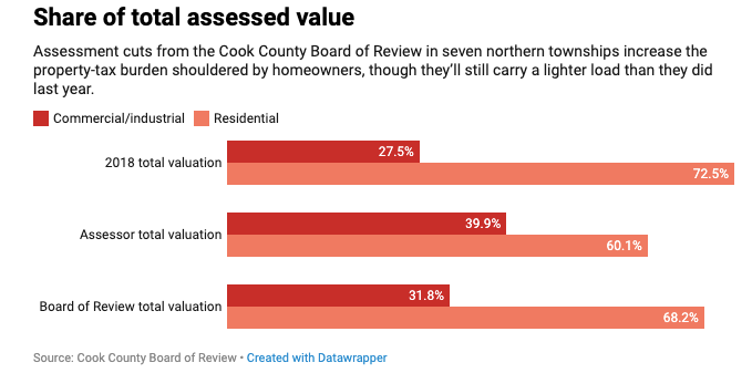 Cook County Commercial and Residential Assessed Property Value After Board of Review Revises North Side Townships.