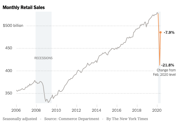 National Retail Sales Increase at the end of May including sector-by-sector breakdown from April’s drop and percentage increase/decrease from 2019.